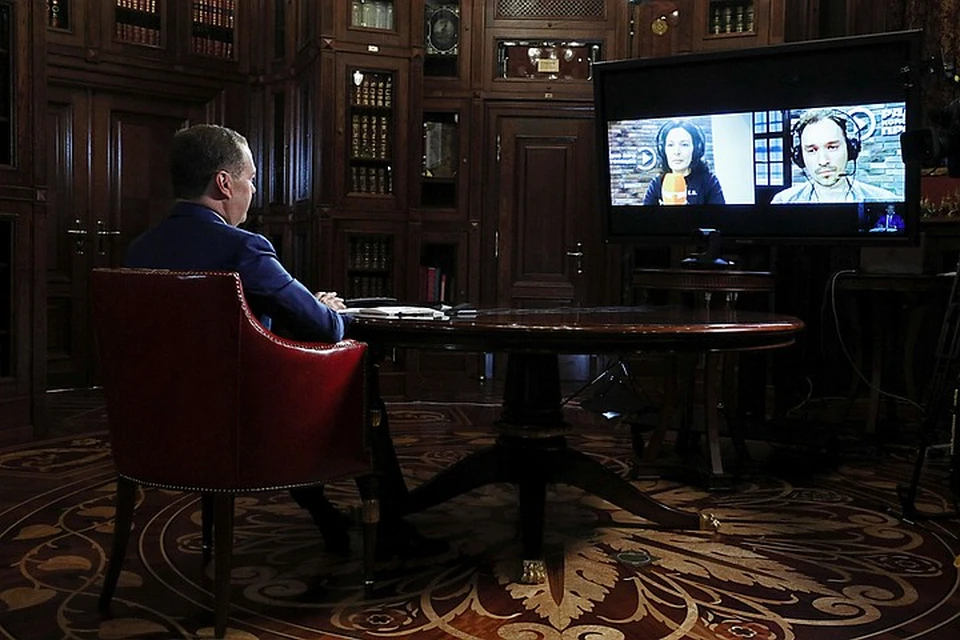 德米特里·梅德韦杰夫回答了我们记者的提问。 图片来源:叶卡捷琳娜·什图金娜